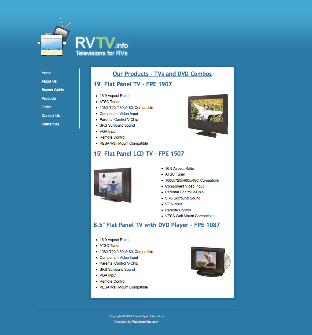 Website design for a Tucson television retailer – with sales and installation geared towards recreational vehicles.
